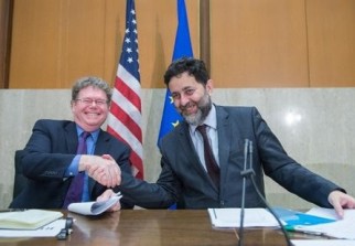Lancées il y a près d'un an, les négociations sur cet accord de libre-échange se sont muées en épouvantail à l'approche des élections européennes de dimanche en raison des craintes d'une dérégulation générale qui profitait notamment au boeuf américain aux hormones ou aux OGM.