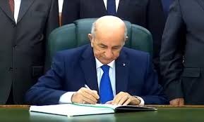 La signature a eu lieu en présence du président du Conseil de la Nation par intérim, Salah Goudjil, du président de l'Assemblée Populaire Nationale (APN), Slimane Chenine, du Premier ministre, Abdelaziz Djerad et du chef d'Etat-major de l'Armée nationale populaire (ANP), le général de Corps d'Armée, Saïd Chanegriha, selon le communiqué.