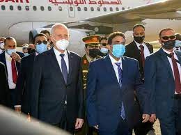 M. Saied est accompagné du ministre des Affaires étrangères Othman Jarandi, de sa principale conseillère Nadia Akacha et de quelques autres conseillers de la préside nce.