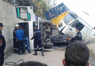 ''L'accident s'est produit au moment où le poids lourd, chargé de deux containers, tentait de doubler le bus de transport de voyageurs. Il s'est renversé ensuite sur l'autocar, avec sa cargaison'', précise t-on.
