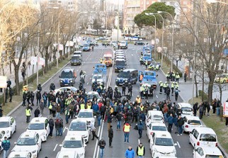 Ainsi, des dizaines de policiers casqués et armés et des grues ont été déployés sur la promenade de la Castellana, un axe nord-sud de la capitale, pour obliger les taxis à dégager les véhicules qui bloquaient le trafic.