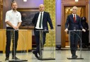 Des hommes en civil exerçaient une surveillance resserrée sur l'assistance et sur les téléphones portables qui, malgré les instructions, auraient été laissés allumés pour briser le huis clos tota l imposé à la rencontre.