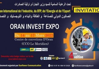 Pour rappel, la troisième édition du salon Oran Invest expo s'était tenue en juillet 2021 s'était soldée par la signature de plus de 50 conventions de partenariat entre des entreprises nationales publiques et privées ainsi que des entreprises étrangères en activité en Algérie.