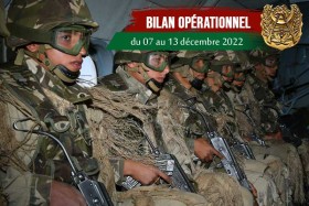 "Dans la dynamique des efforts soutenus de la lutte antiterroriste et contre la criminalité organisée multiforme, des unités et des détachements de l'Armée nationale populaire (ANP) ont exécuté, durant la période du 7 au 13 décembre 2022, plusieurs opérations ayant abouti à des résultats de qualité qui reflètent le haut professionnalisme, la vigilance et la disponibilité permanente de nos Forces armées à travers tout le territoire national", précise la même source, relevant que "dans le cadre de la lutte antiterroriste, l'opération de qualité menée par des unités de l'ANP à Tipaza, a permis d'éliminer trois (3) terroristes, de capturer un (1) autre et de récupérer quatre (4) armes à feu, des munitions et d'autres objets".