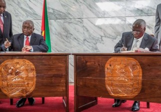 Le document a été paraphé par les deux hommes à Maputo en présence d'un parterre d'une centaine de diplomates et de hauts dignitaires rassemblés à la présidence. Cette accord scelle un cessez-le-feu conclu le 24 août entre les négociateurs des deux camps rivaux.