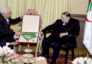 Pour sa part, le Président Bouteflika a décerné à son homologue Mahmoud Abbas, Abou Mazen, la médaille de l'ordre de mérite national Al Athir en reconnaissance de ses efforts au service de son pays et pour la défense du droit légitime de son peuple à l'instauration d'un Etat souverain sur sa terre historique".