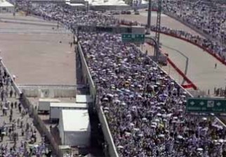 "Cette procédure permettra aux pèlerins de jeter des cailloux sur les stèles (représentant Satan) et d'éviter toute bousculade provoquée par le surnombre", a déclaré à la Saudi Gazette Hussein al-Charif, sous-secrétaire au ministère du Hadj. Le site de lapidation avait été aménagé avec des ponts conduisant sur cinq étages à chacune des trois stèles représentant Satan.