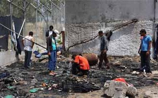 Selon la police, il est parti de foyers allumés en marge des rixes. Les pompiers ont dans un premier temps eu du mal à intervenir dans ce climat tendu, tandis que le vent attisait les flammes.