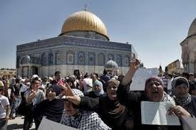 Depuis une semaine, la répression contre les manifestants palestiniens se multiplient sur l'esplanade, troisième lieu saint de l'islam. Dans la nuit de jeudi à vendredi, des colons israéliens ont vandalisé une mosquée à Oum al-Faham dans le nord des territoires palestiniens occupés en 1948, ils ont incendié la porte d'entrée de la mosquée, et inscrit un graffiti hostile aux Palestiniens.