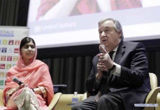 «Vous êtes le symbole de la cause qui est probablement la plus importante dans le monde, l'éducation pour tous, et en particulier, l'éducation des filles», a déclaré le secrétaire général des Nations Unies, Antonio Guterres, lors de la cérémonie de désignation au siège de l'ONU à New York.