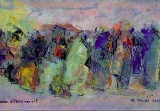 Le plasticien propose également des £uvres proches de la calligraphies usant des symboles comme matière première ainsi que quelques portraits dédiés à la femme targuie, à l'imzad ainsi qu'au costume traditionnel targui.Si cette exposition renseigne sur une carrière prolifique et évolutive, les £uvres de l'artiste peintre n'ont cependant pas bénéficié de la mise en valeur nécessaire à une exposition, le travail de Akacha Talbi a été dans sa majorité exposé de manière brute en collant directement le papier sur des panneaux en verre.